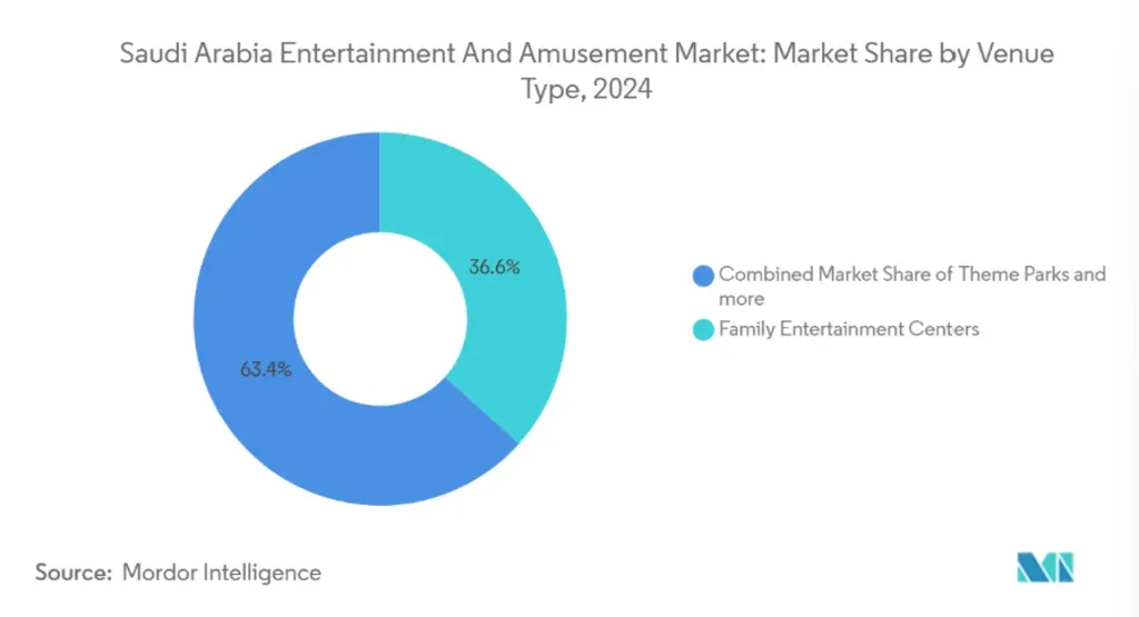 Geographically, Riyadh dominates with weekday FEC occupancy averaging 68%, thanks to its Boulevard zones and luxury retail hubs. Makkah aligns its entertainment mix with pilgrimage cycles, while the Eastern Province leverages its coastal climate for water parks. Emerging regions like Tabuk’s NEOM corridor are experimenting with net-zero ride technologies and holographic theaters, signaling the future direction of the Saudi Entertainment Market.